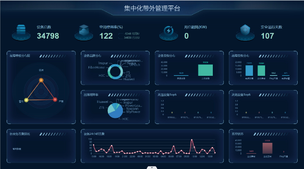 监控告警:系统平台适配现网所有的硬件设备品牌及型号,实现智能及时告警,代替人工巡检,提升运维效率。